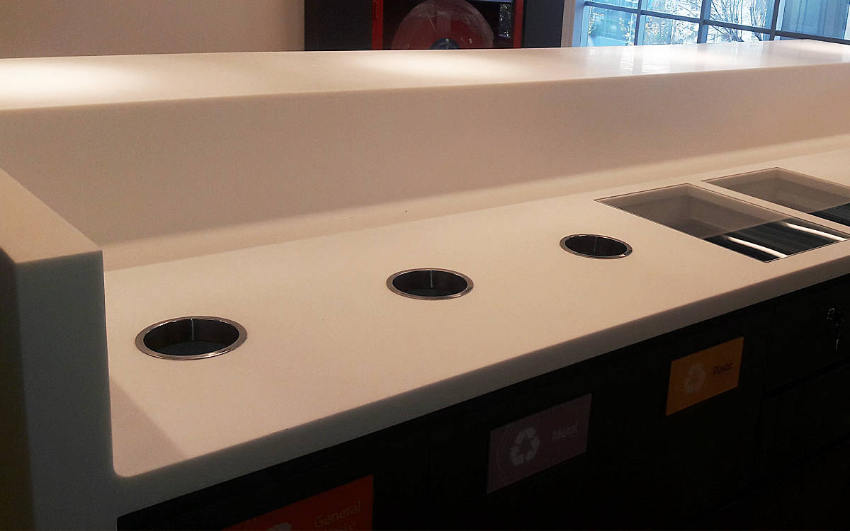 Es una superficie sólida, que está compuesta por una mezcla avanzada de materias primas polimetilmetacrilato e hidróxido de aluminio que les dan gran durabilidad, alta resistencia al impacto, impermeabilidad y fácil mantenimiento.